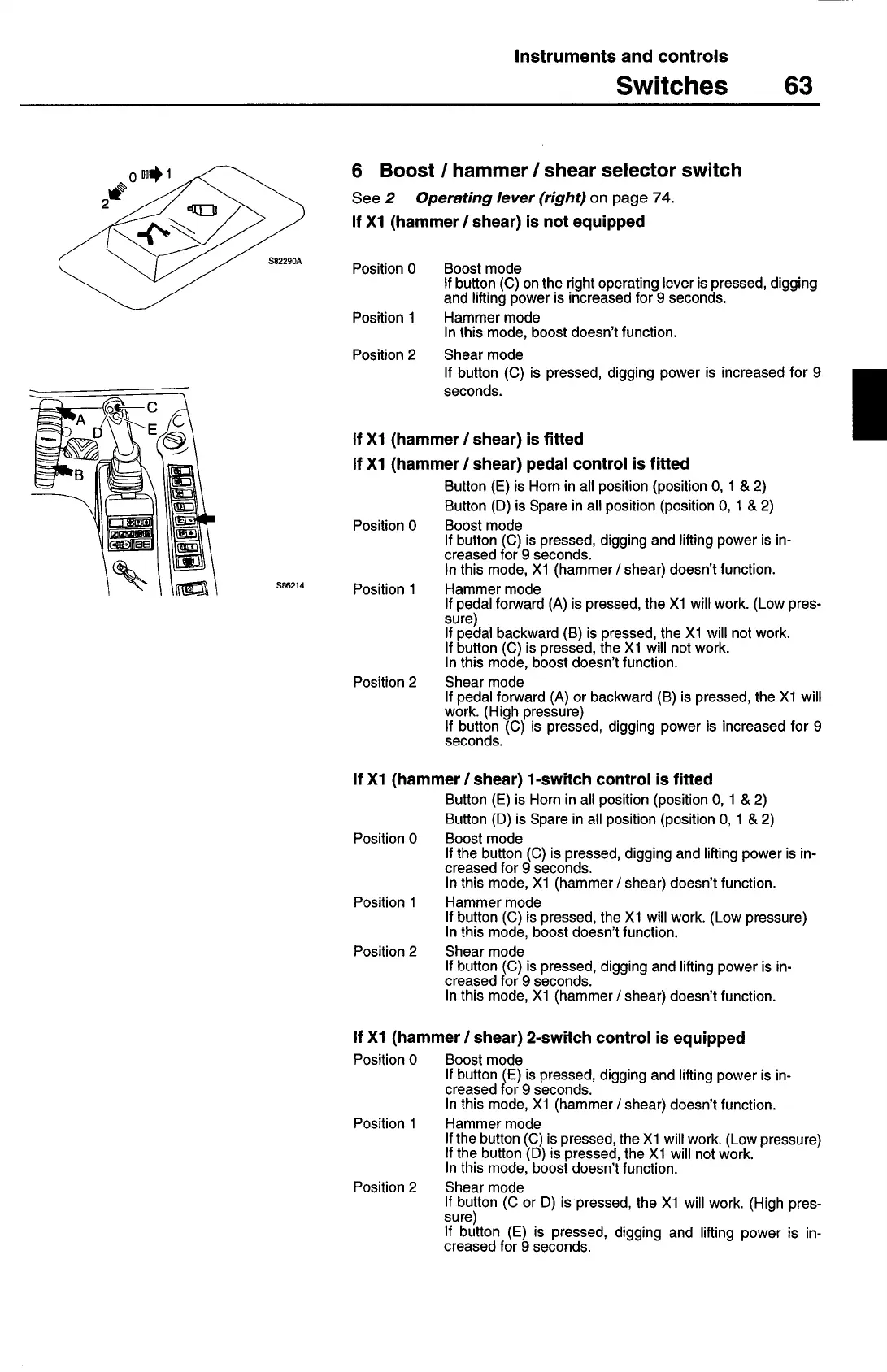 If Xl (hammer! shear) 1-switch control is fitted