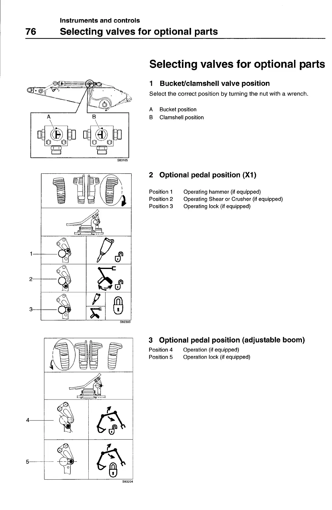 1 Bucket/clamshell valve position