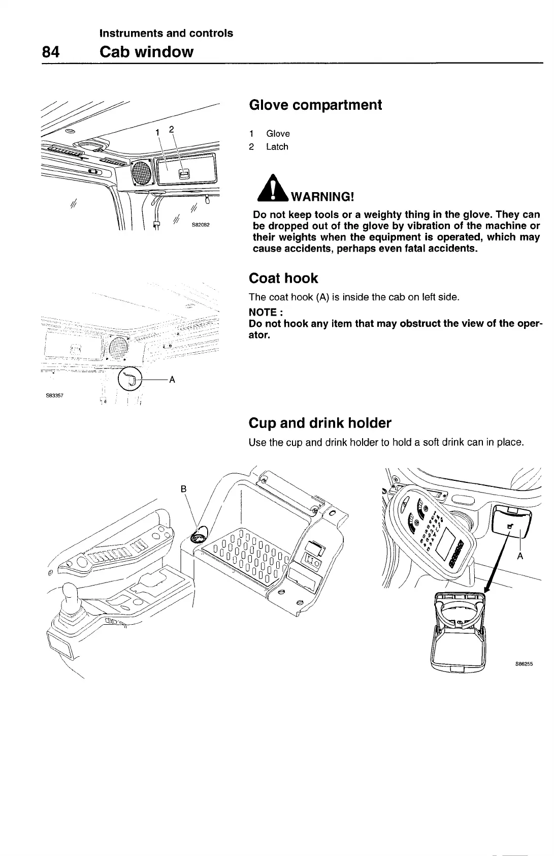 The coat hook (A) is inside the cab on left side.