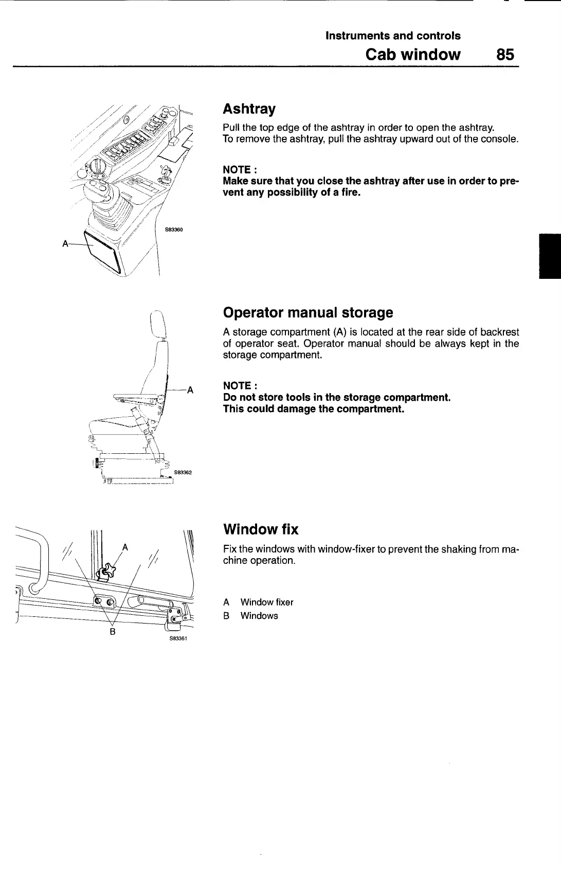 of operator seat. Operator manual should be always kept in the