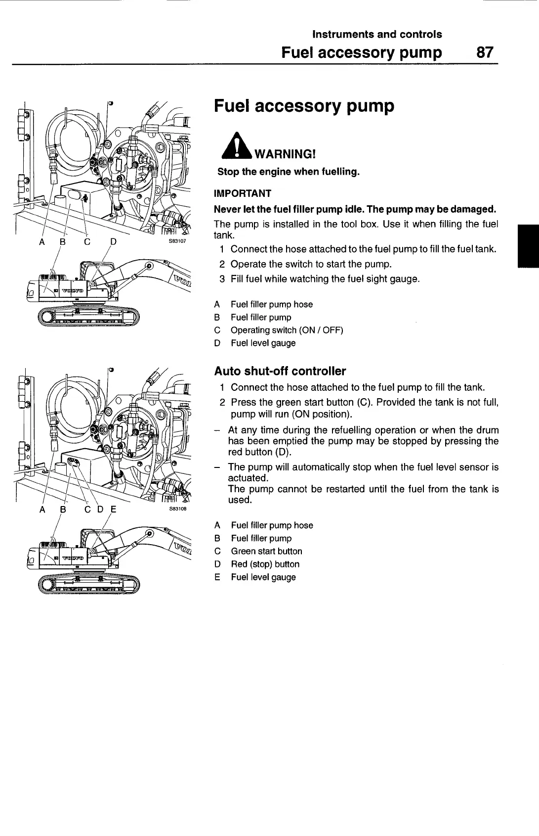 1 Connect the hose attached to the fuel pump to fill the fuel tank.