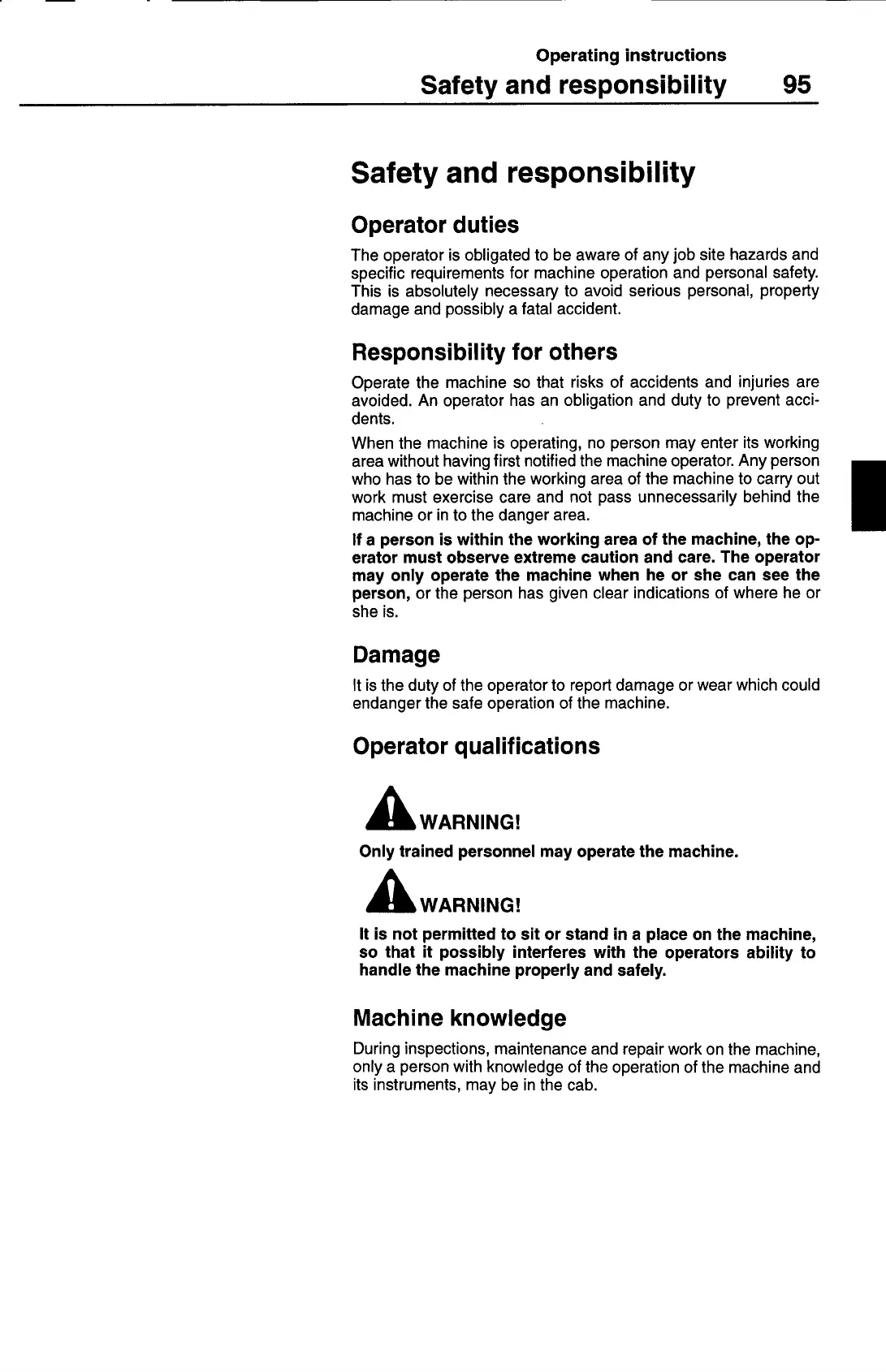 erator must observe extreme caution and care. The operator