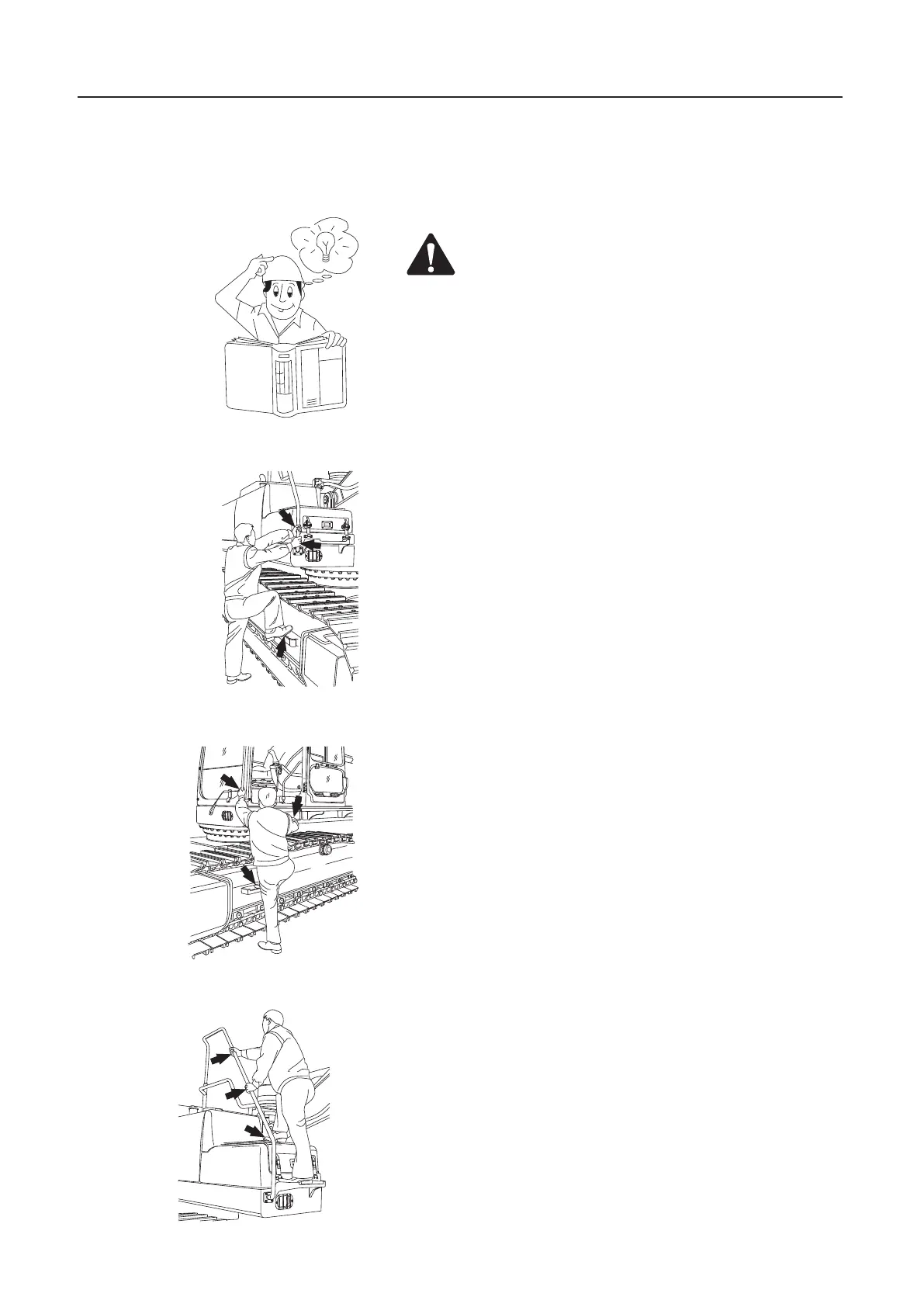 machine and use the steps and hand-holds. Always use the