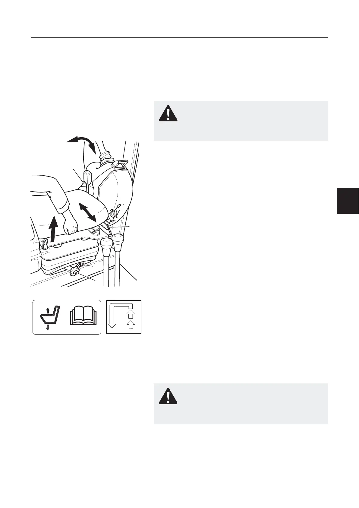 Do not adjust the operator’s seat while the machine is mov-