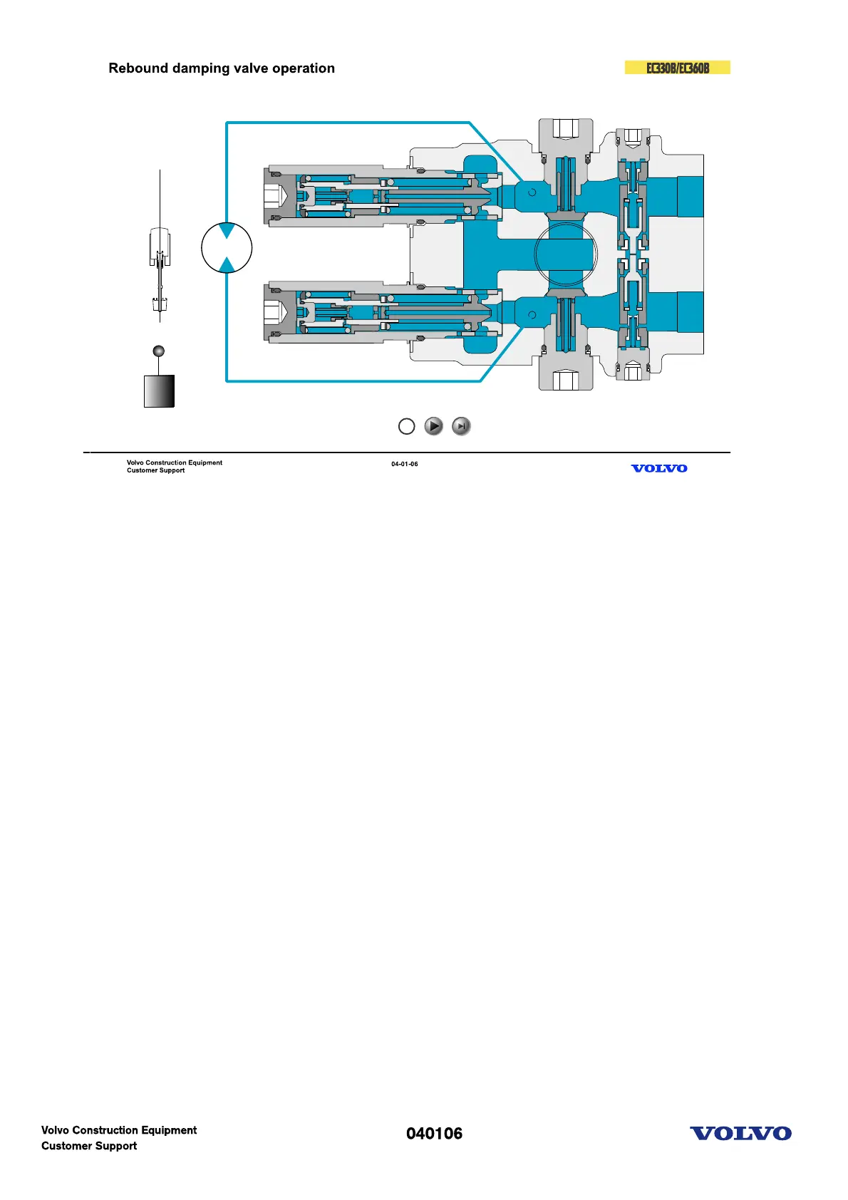 (3) Hydraulic braking & rebound begin : A port is pressurized by discharged oil. But valve is moving