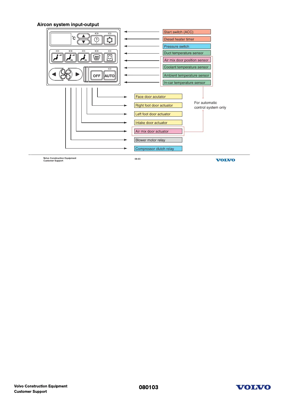 In auto-mode when other switches except temperature setting and trouble checking switch is operated,