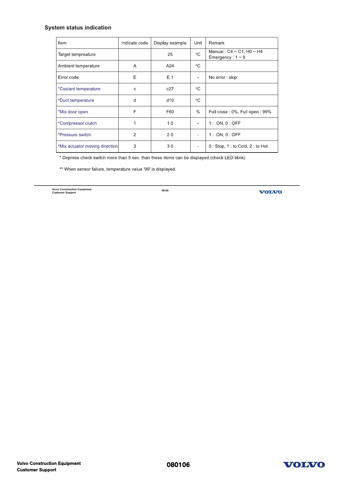 In service mode, you can check all of items.
