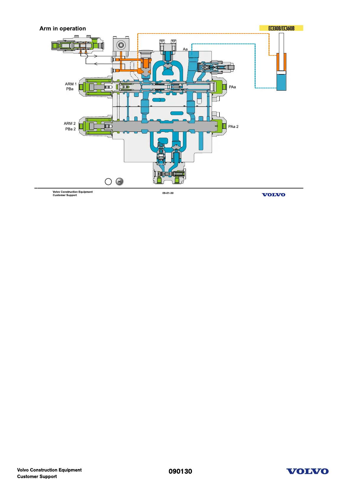 - Arm2 logic valve is closed by boom up signal.