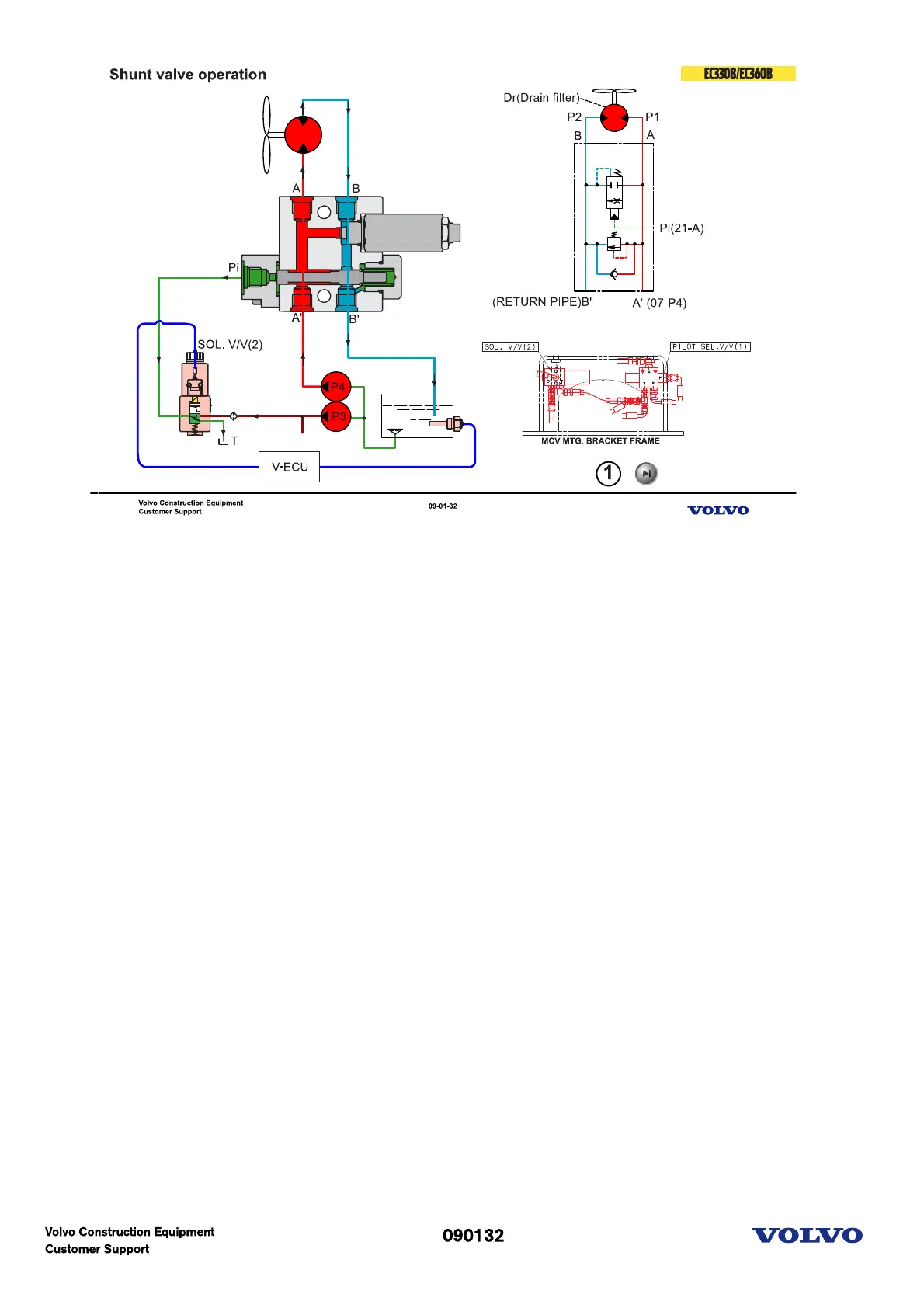 moves shunt valve spool to the right. Some amount of oil supplied from P2 pump to shunt valve A' port