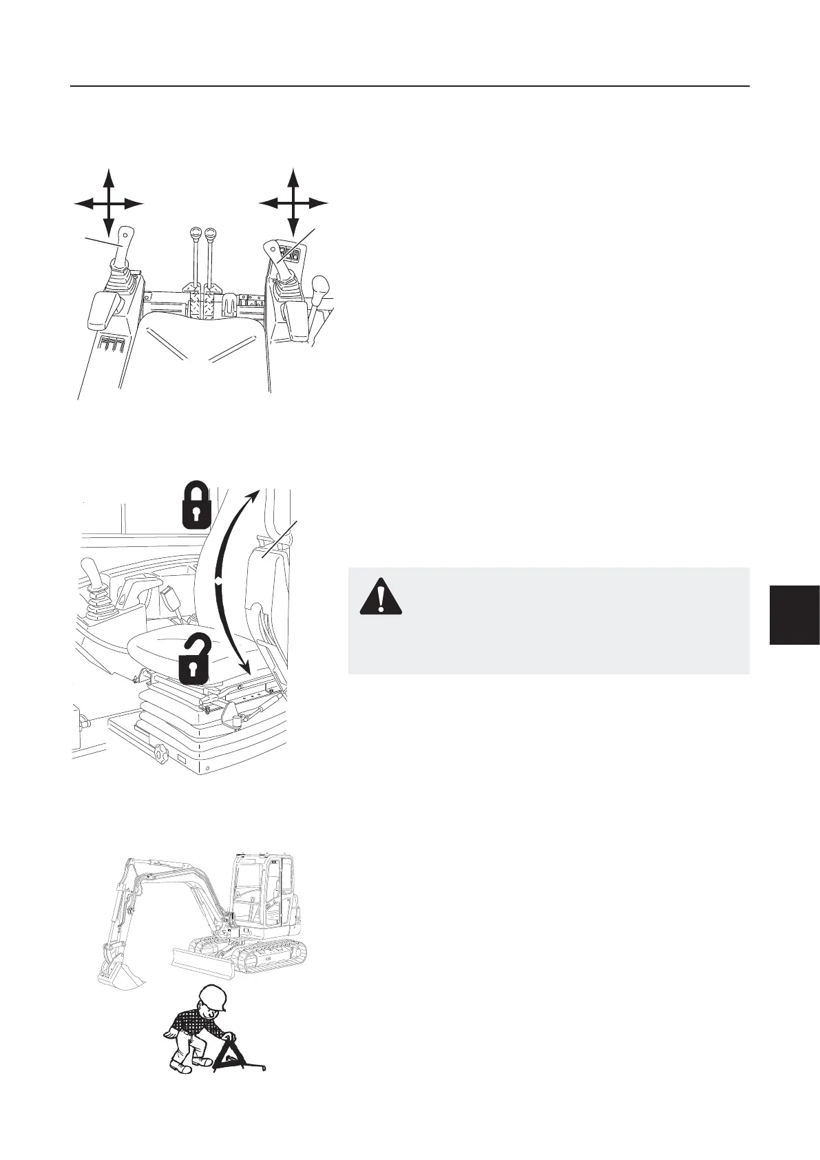 – Use control levers (2) and (8) to park the excavator on a solid,