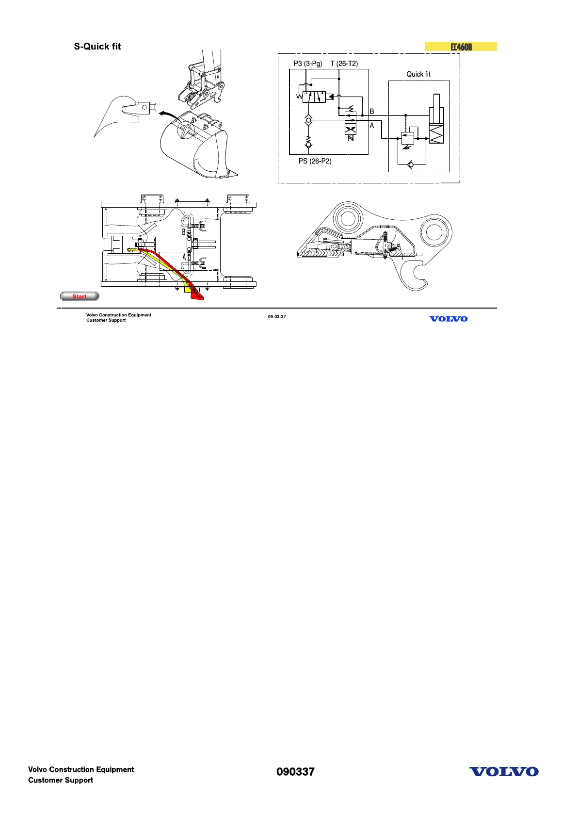 The quick-fit attachment is fitted to the arm end and bucket link. The connection between the quick-fit