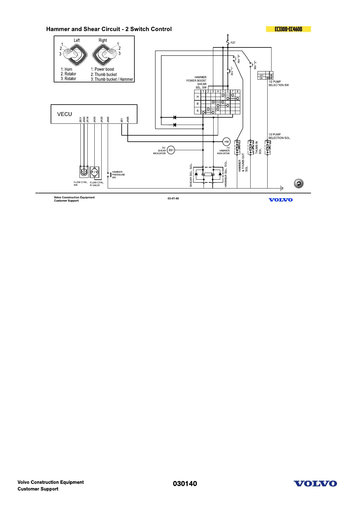 Single acting(hammer) is operated by joystick button. In this case, RH joystick 3 can be used for hammer.