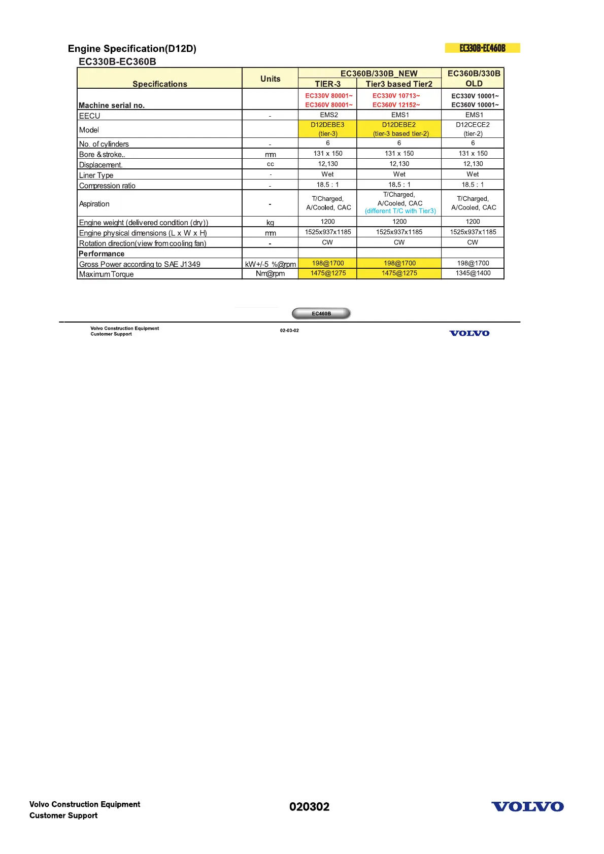 Volvo EC700B - D12 D Engine Specification