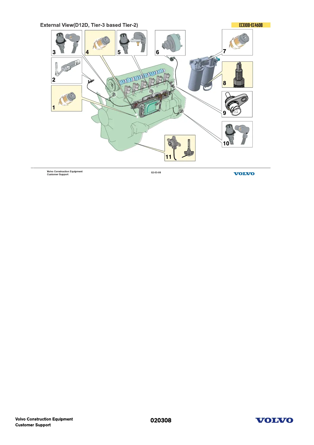 The picture shows all D12D engine sensors. Inside the EECU there are also sensors for ambient air