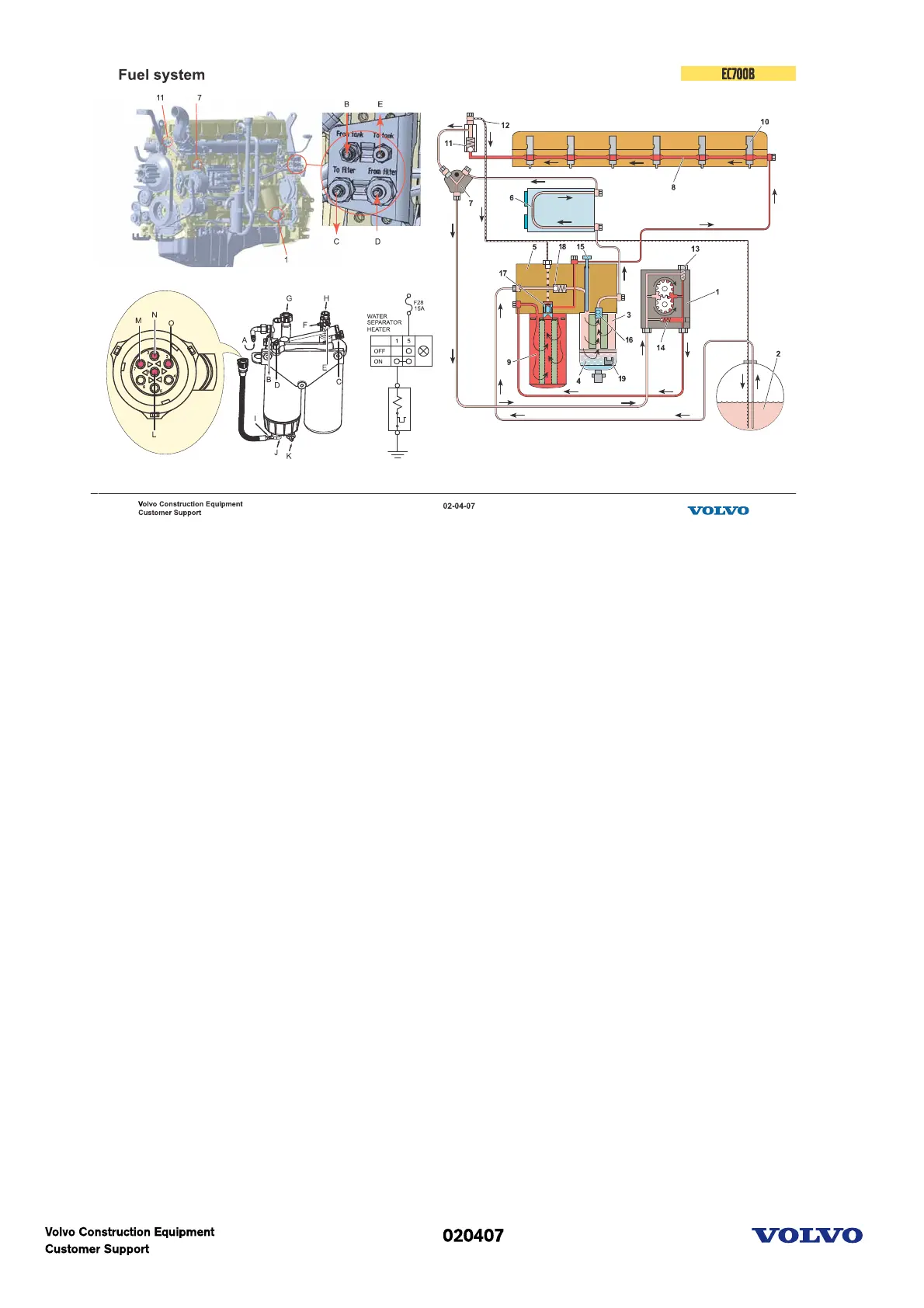 The fuel is drawn with help of the fuel feed pump (1) through the tank unit (2), via fuel pre- filter (3) and