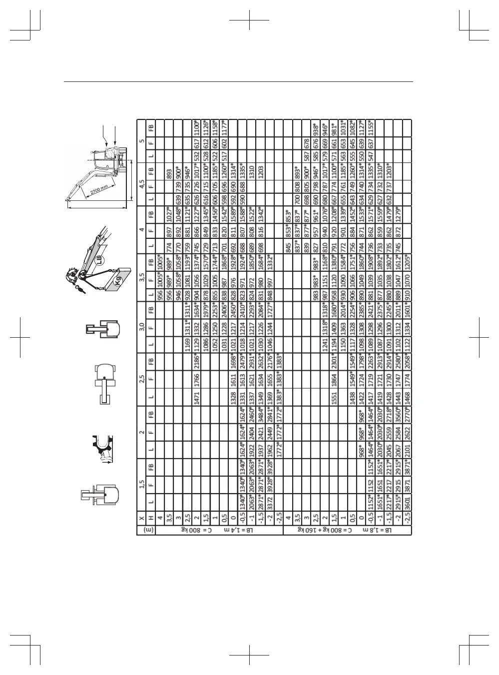 Table : Lifting capacities, ECR50D with safety