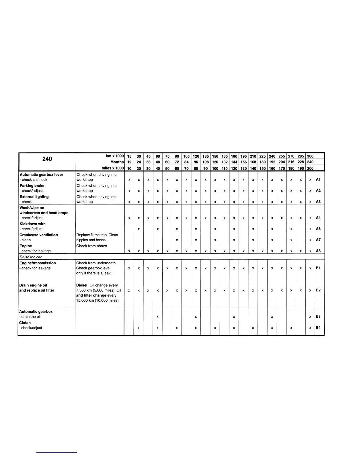 Volvo Engine - Maintenance Service - 240; 240: Automatic Gearbox and Clutch Checks; 240: Brake, Lighting, and Wiper Checks; 240: Engine, Gearbox, and Oil Checks