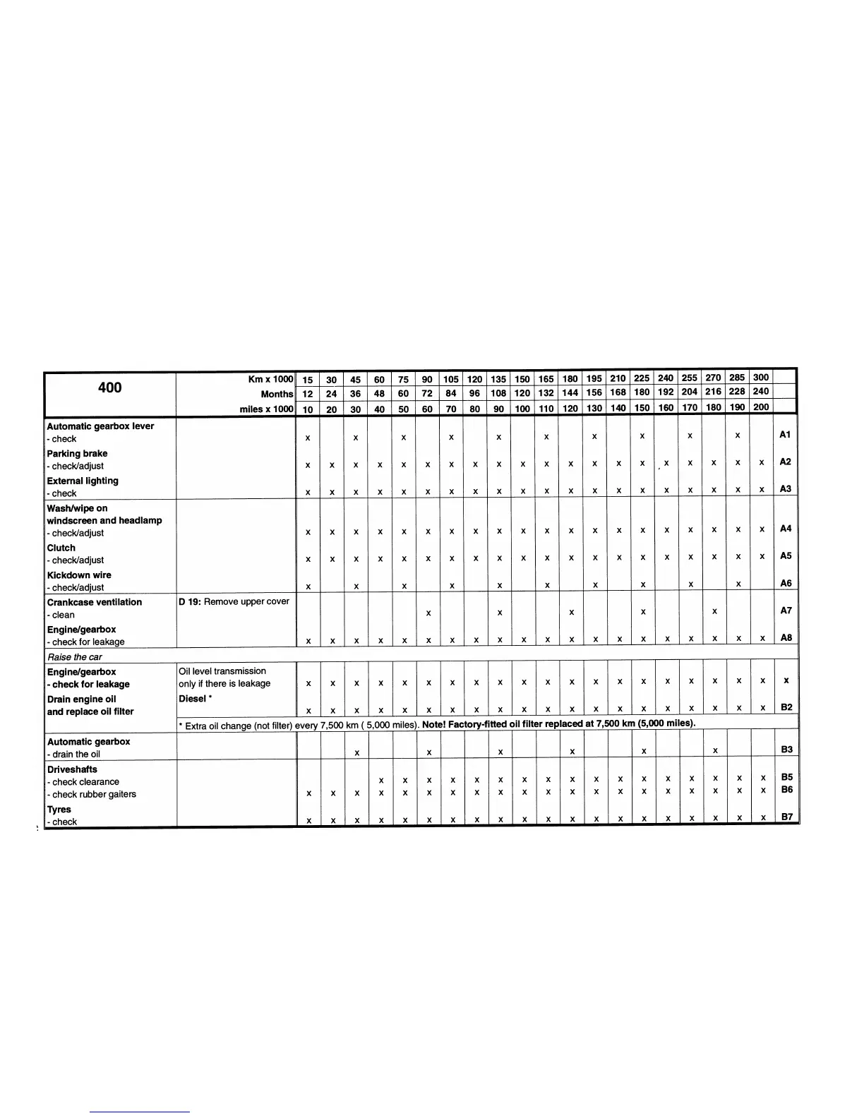 Volvo Engine - Maintenance Service - 400; 400: Automatic Gearbox, Clutch, and Driveshaft Checks; 400: Brake, Lighting, Engine, and Oil Checks; 400: Tyre and Drivetrain Component Checks