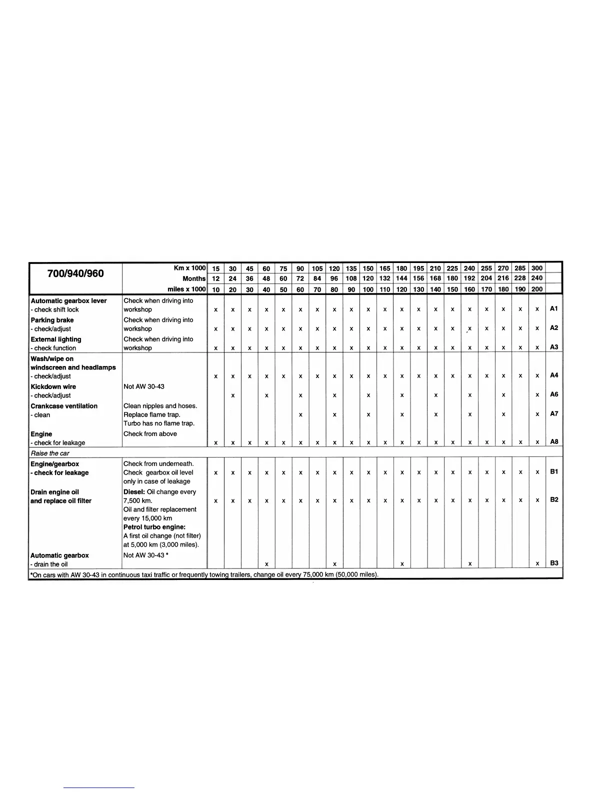 Volvo Engine - Maintenance Service - 700;940;960; 700;940;960: Gearbox, Brake, and Lighting Checks; 700;940;960: Engine Oil and Drivetrain Checks