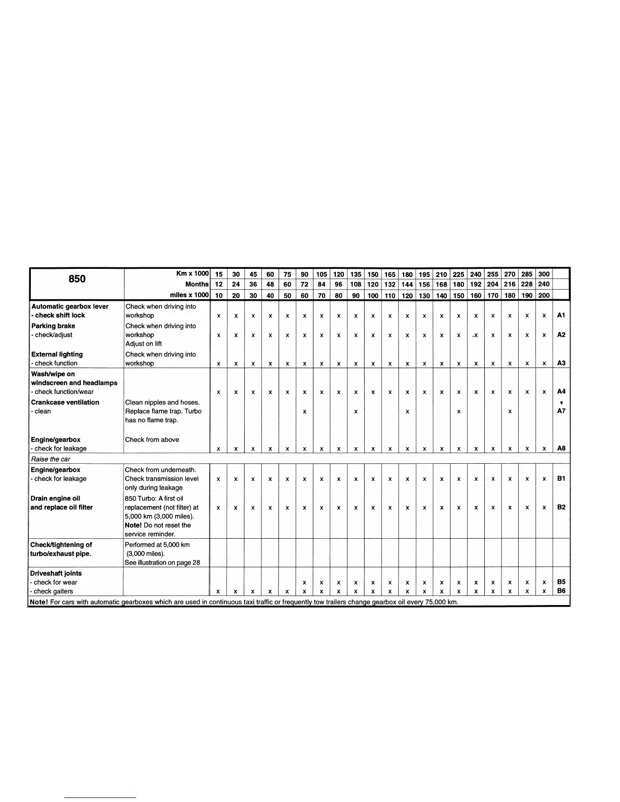 Volvo Engine - Maintenance Service - 850; 850: Gearbox, Brake, and Lighting Checks; 850: Engine, Drivetrain, and Turbo Checks