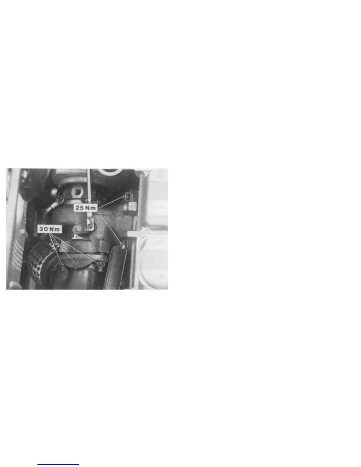 - Tighten turbo unit to exhaust manifold, 25 Nm.