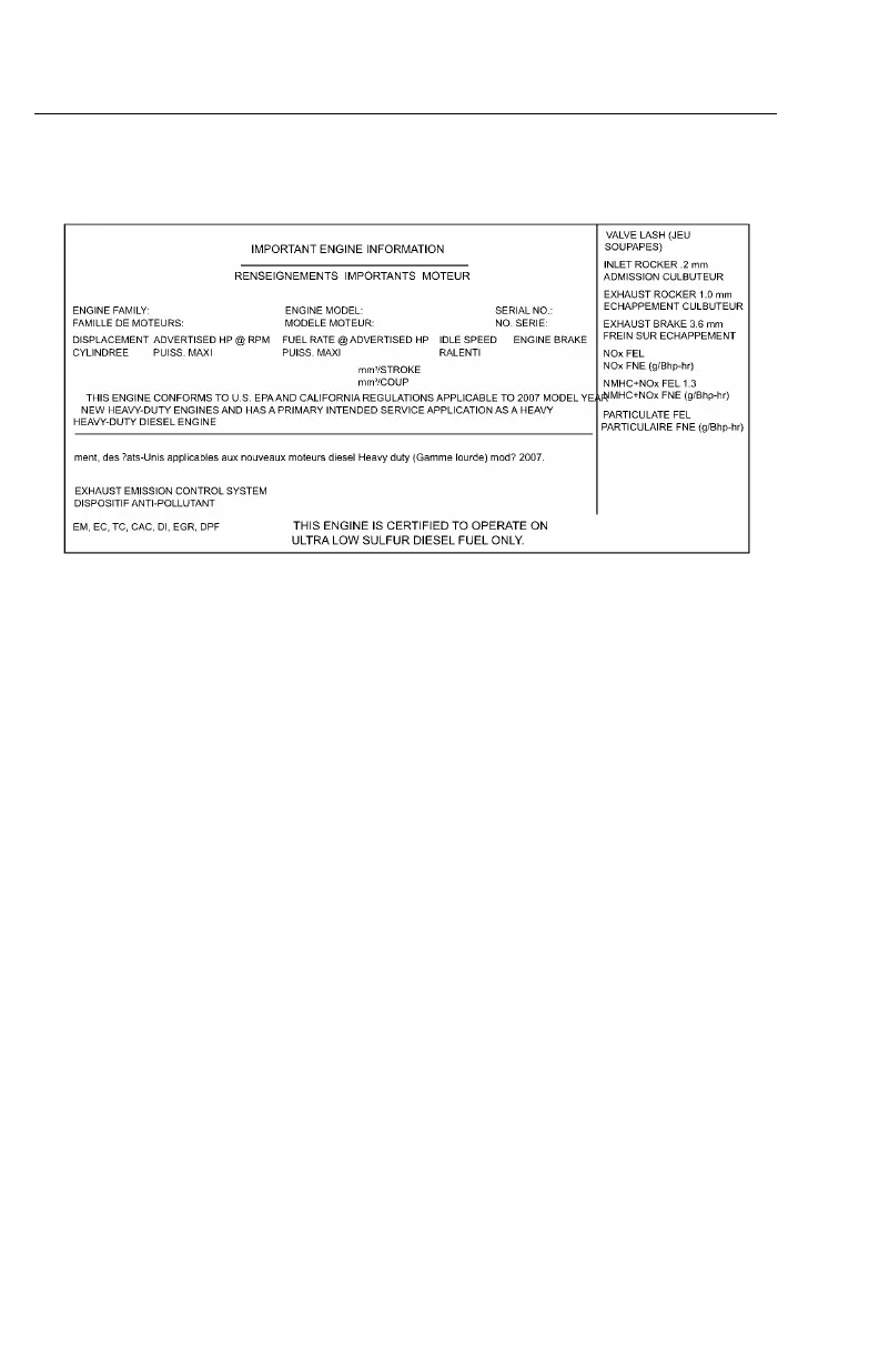 •Emissionsregulationstowhichtheengineconformsandotherpertinent