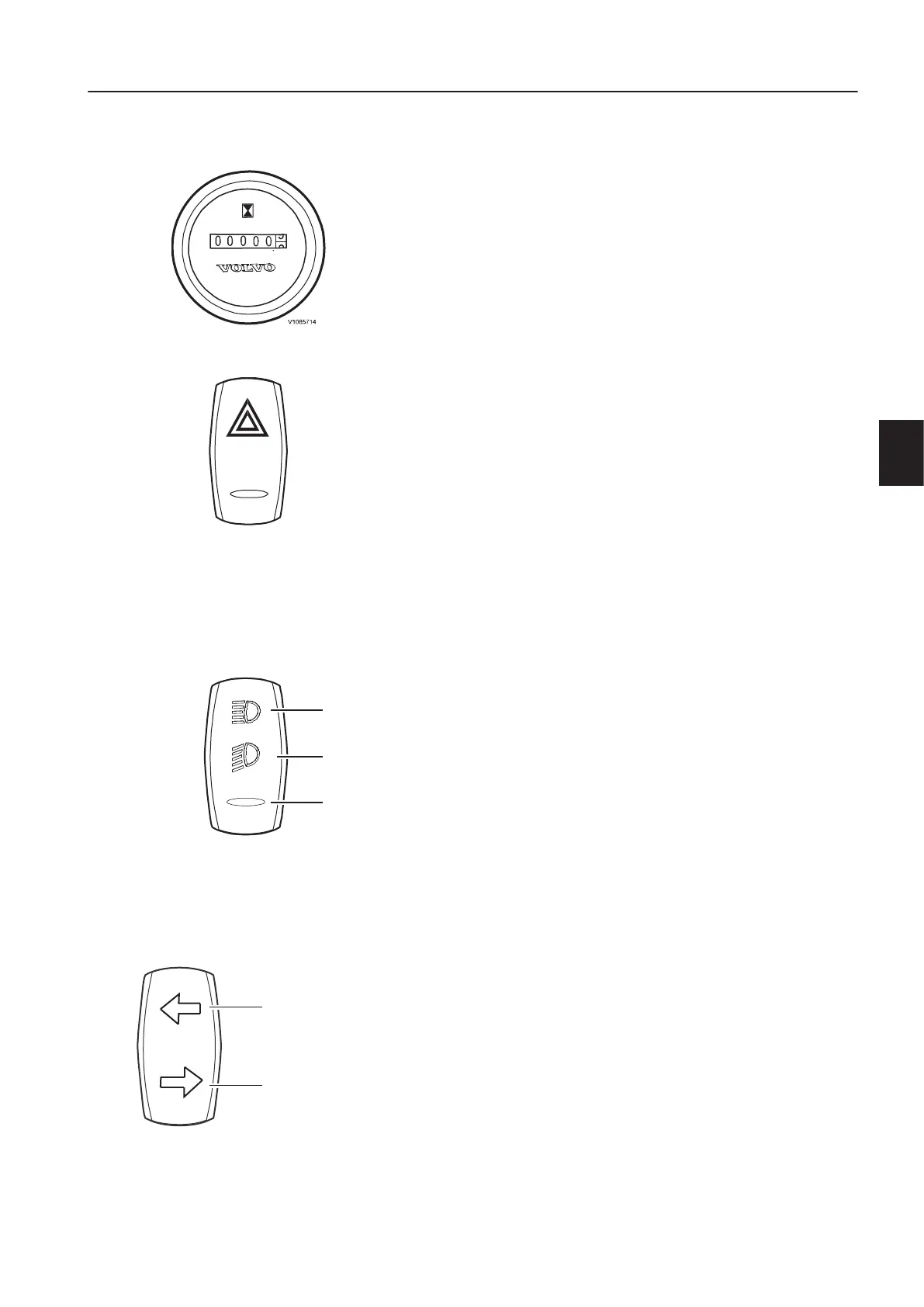 Lower end of switch pressed down = hazard flasher off.