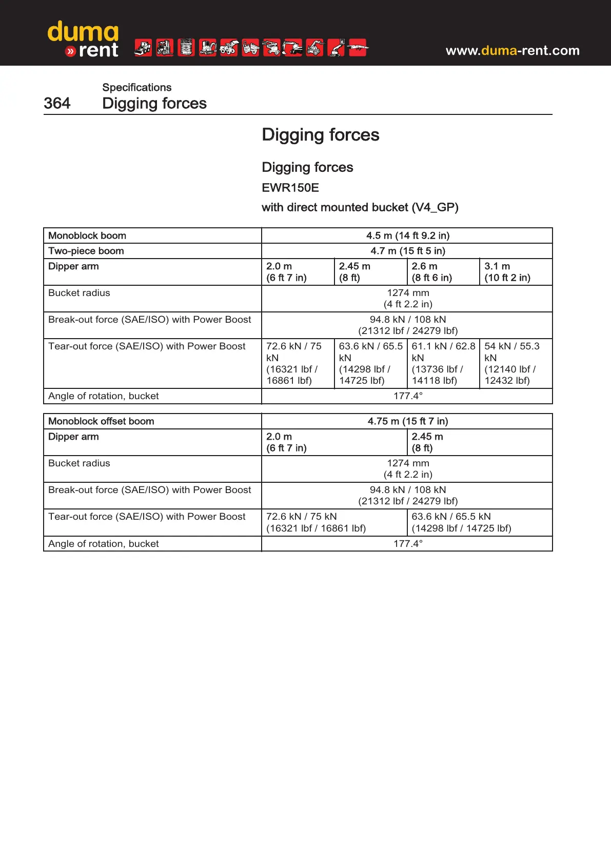Break-out force (SAE/ISO) with Power Boost 94.8 kN / 108 kN