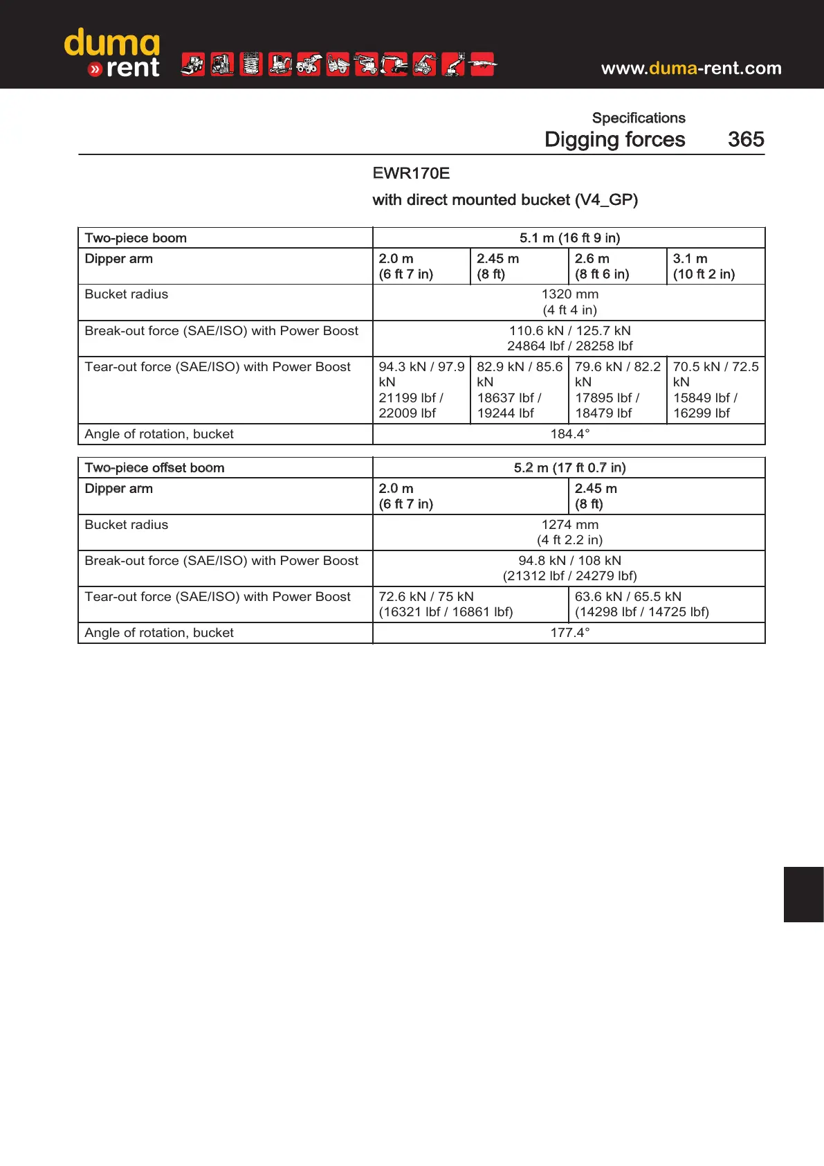 Break-out force (SAE/ISO) with Power Boost 94.8 kN / 108 kN