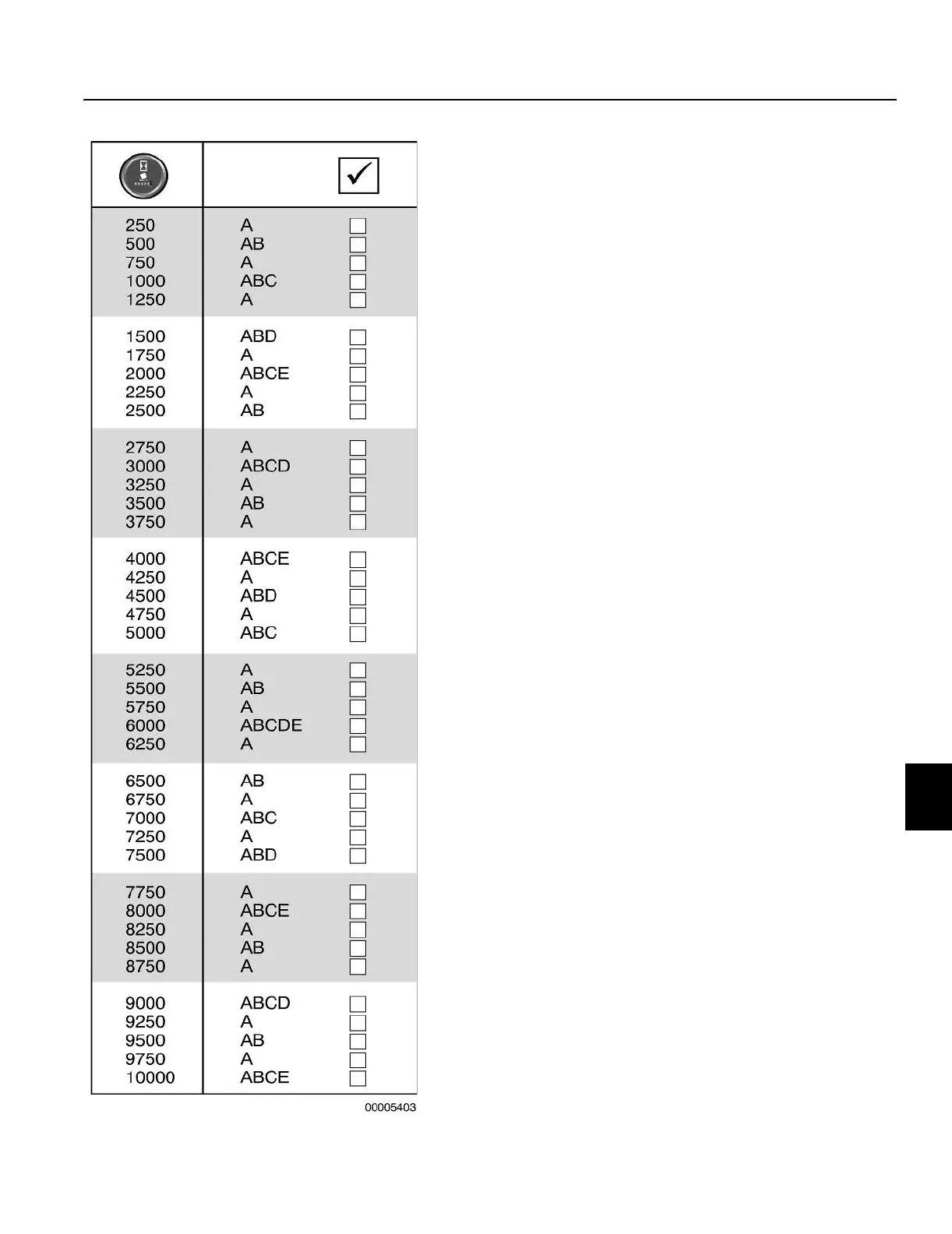 the Daily, Weekly, 250, 500 and 1000 hour services should be car-