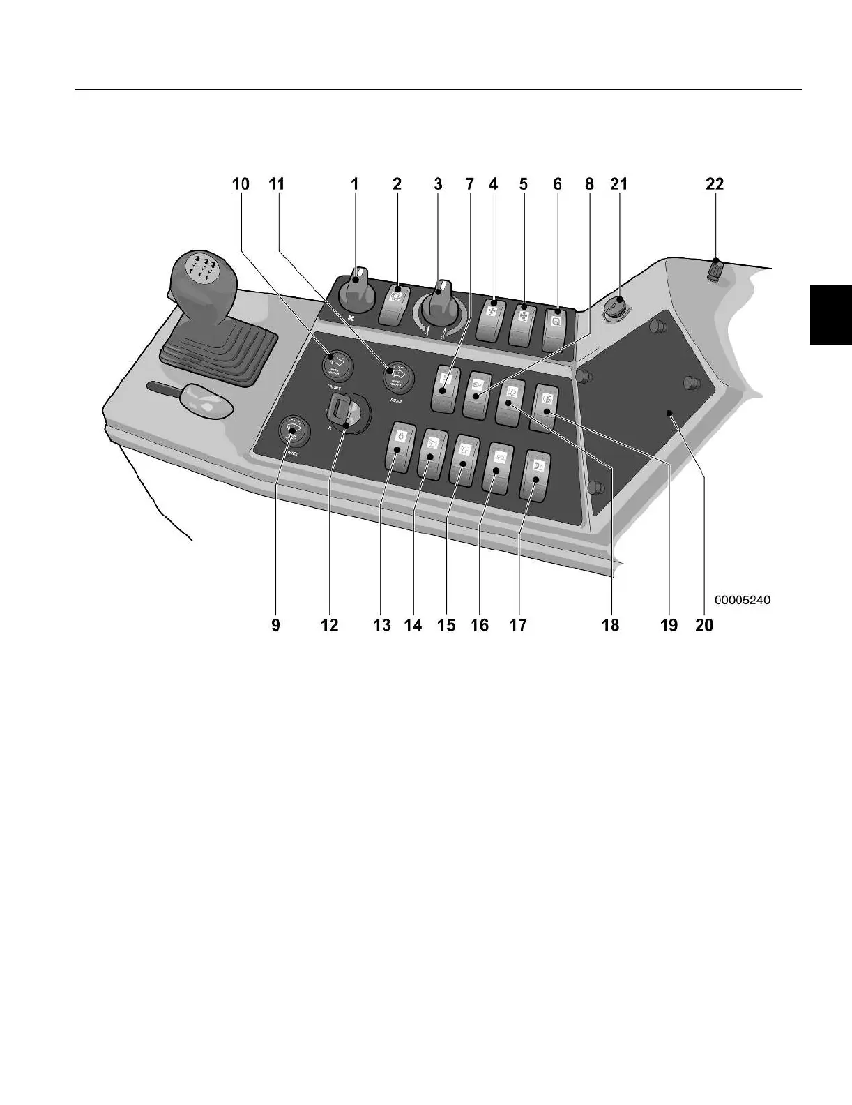 7 Headlights and parking light switch 18 Moldboard lights switch