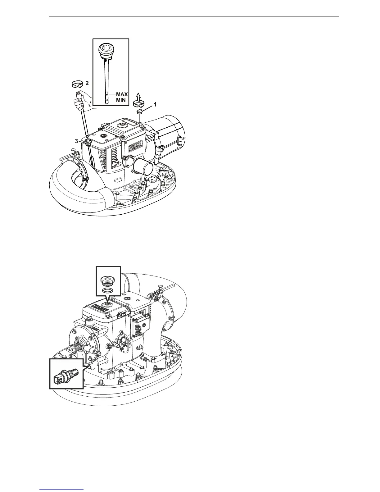 pressure is released. Undo the oil dipstick (3) with