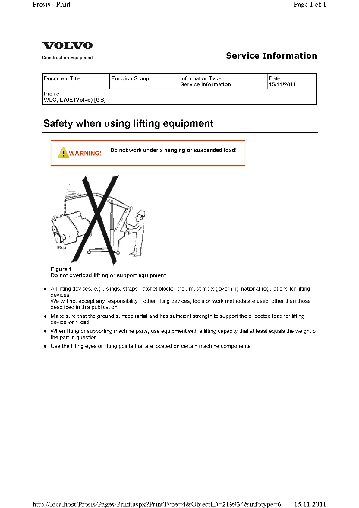 Volvo L70E - Safety when using lifting equipment