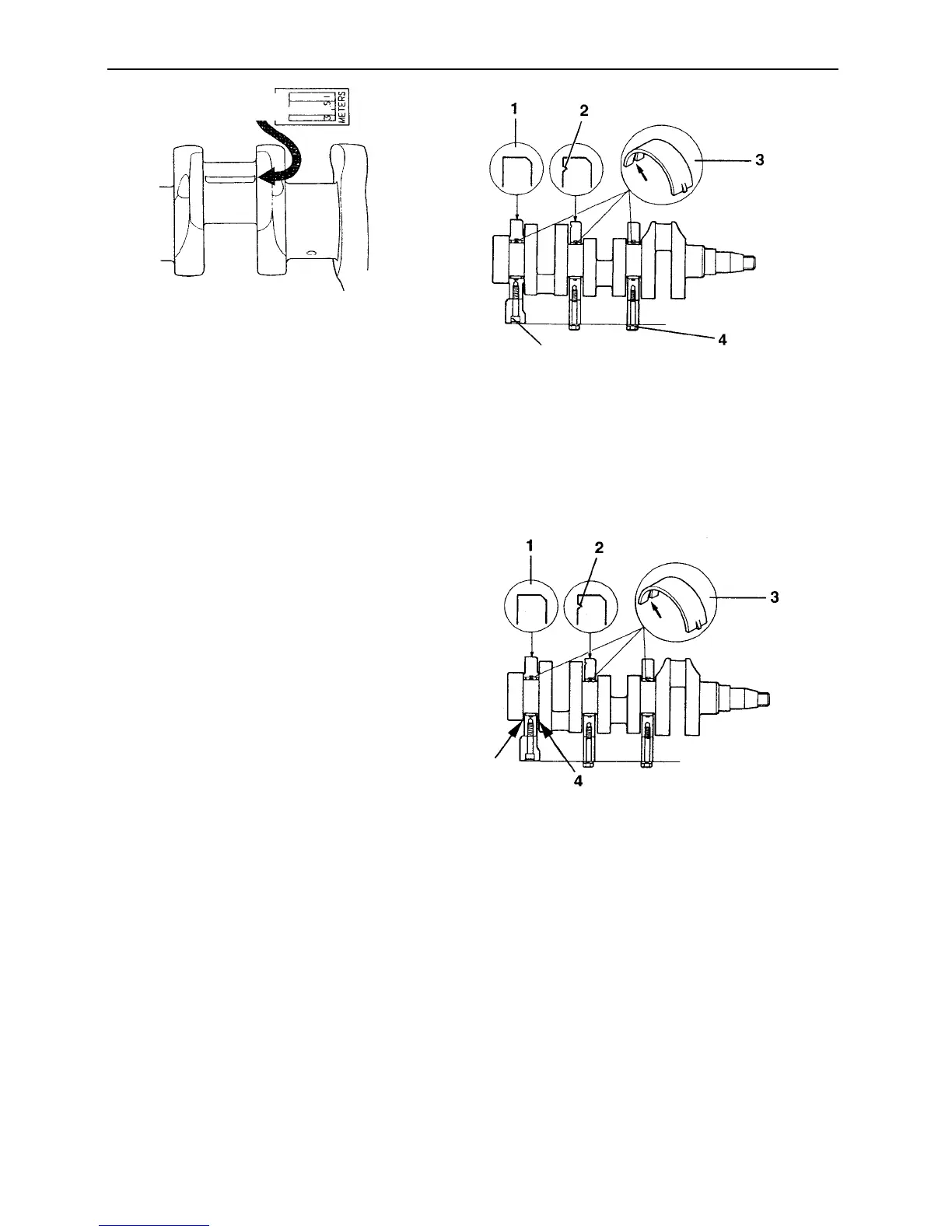Carefully lift the crankshaft in position in the cylin-