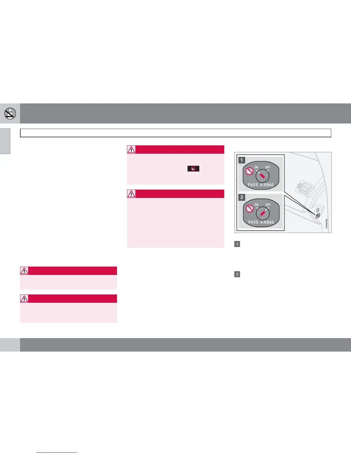 The airbag is deactivated. With the switch