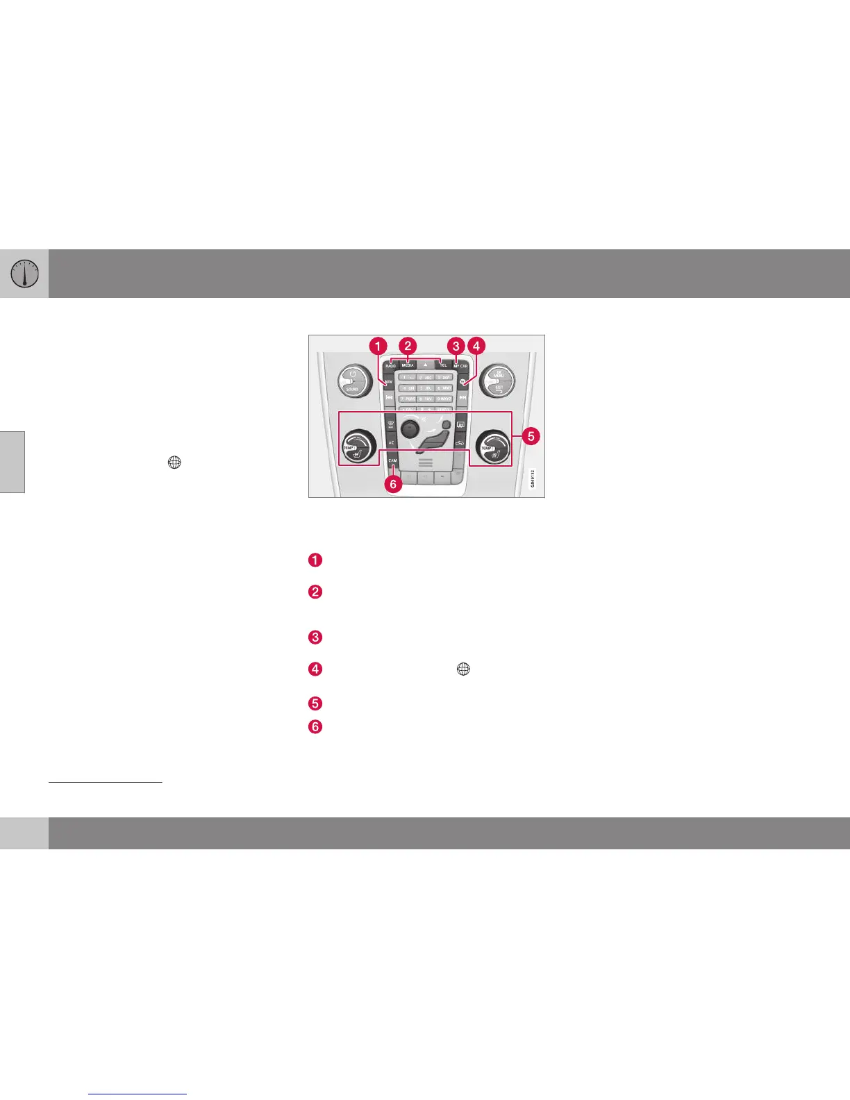 Centre console control panel. The figure is sche-