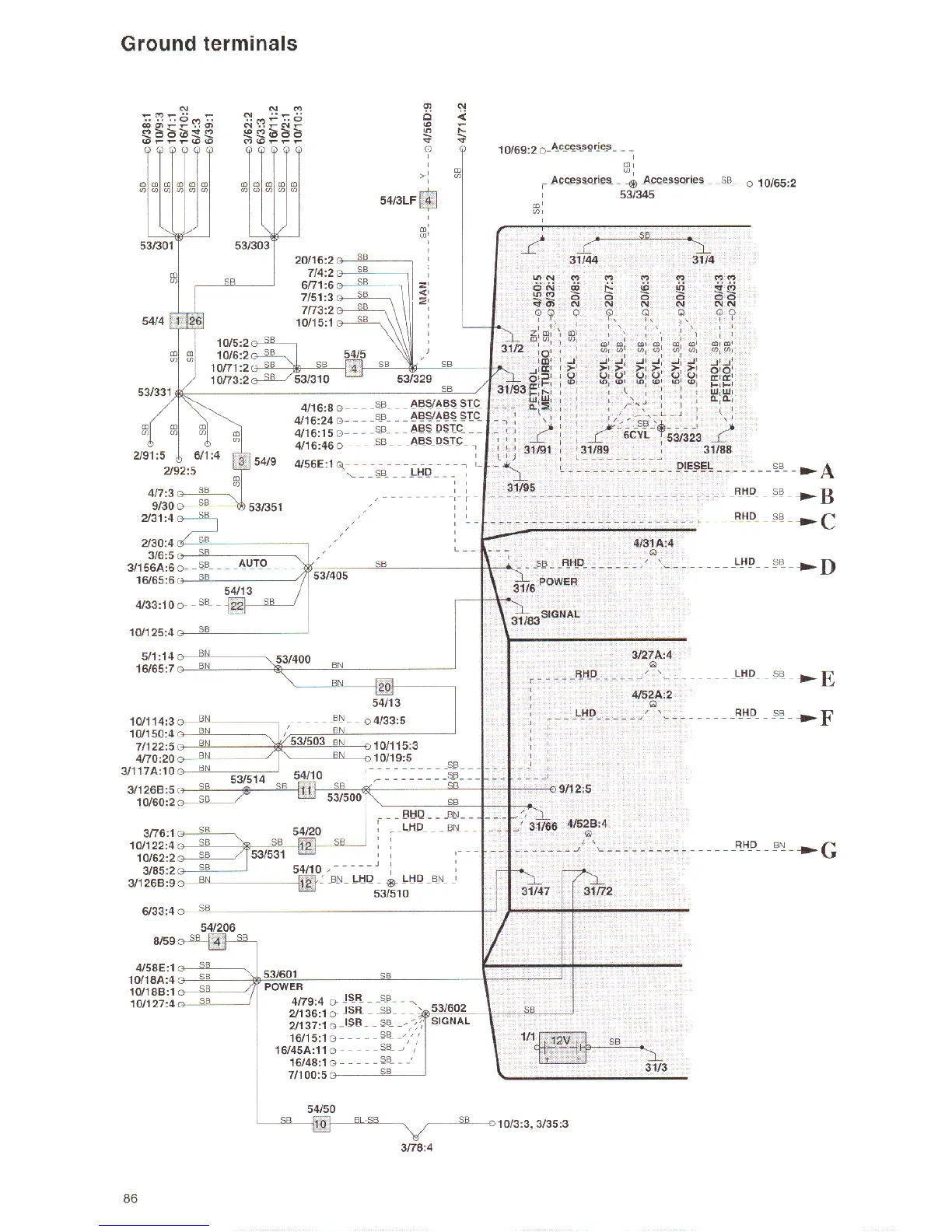 Volvo S80 2000 - Ground Terminals