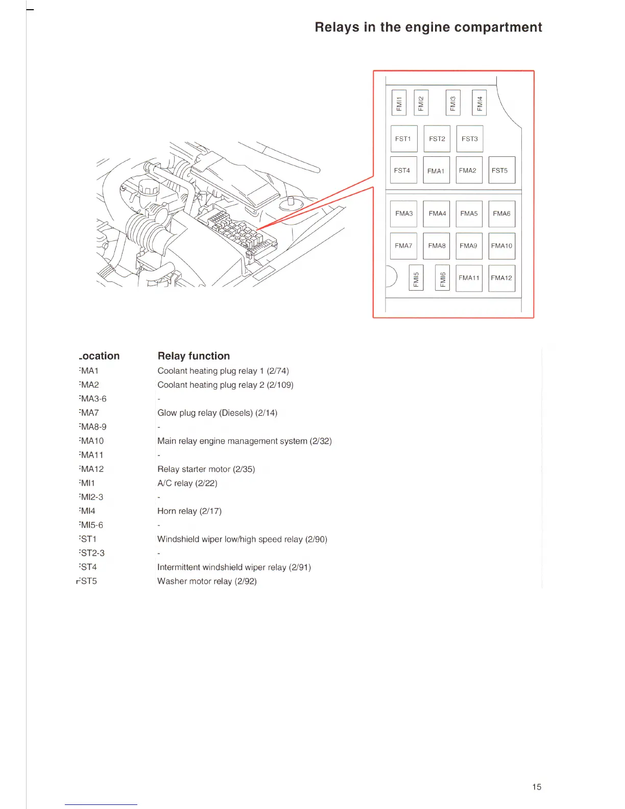 Volvo S80 2000 - Relays in the Engine Compartment
