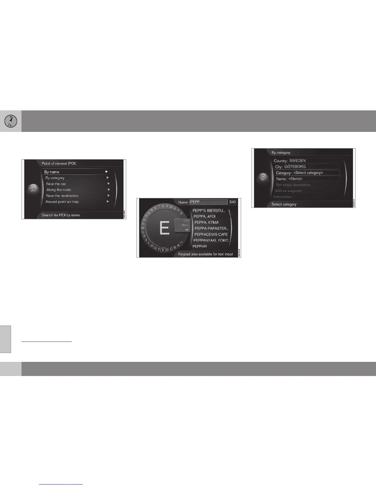To select which POI options should be permanently visible on the map, see the heading "POI on map" (p. 63).