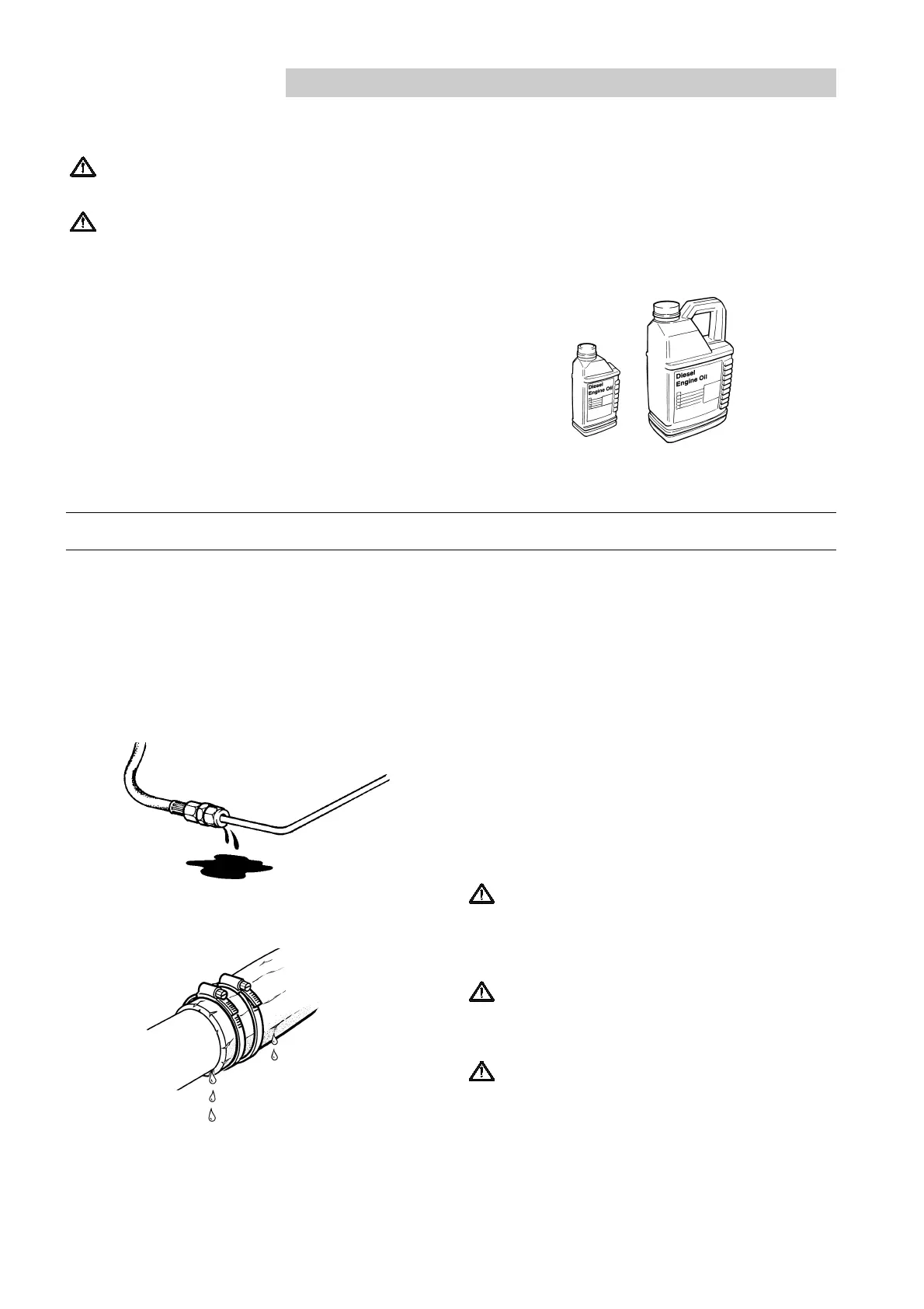 IMPORTANT! If an oil, fuel or coolant leak is de-
