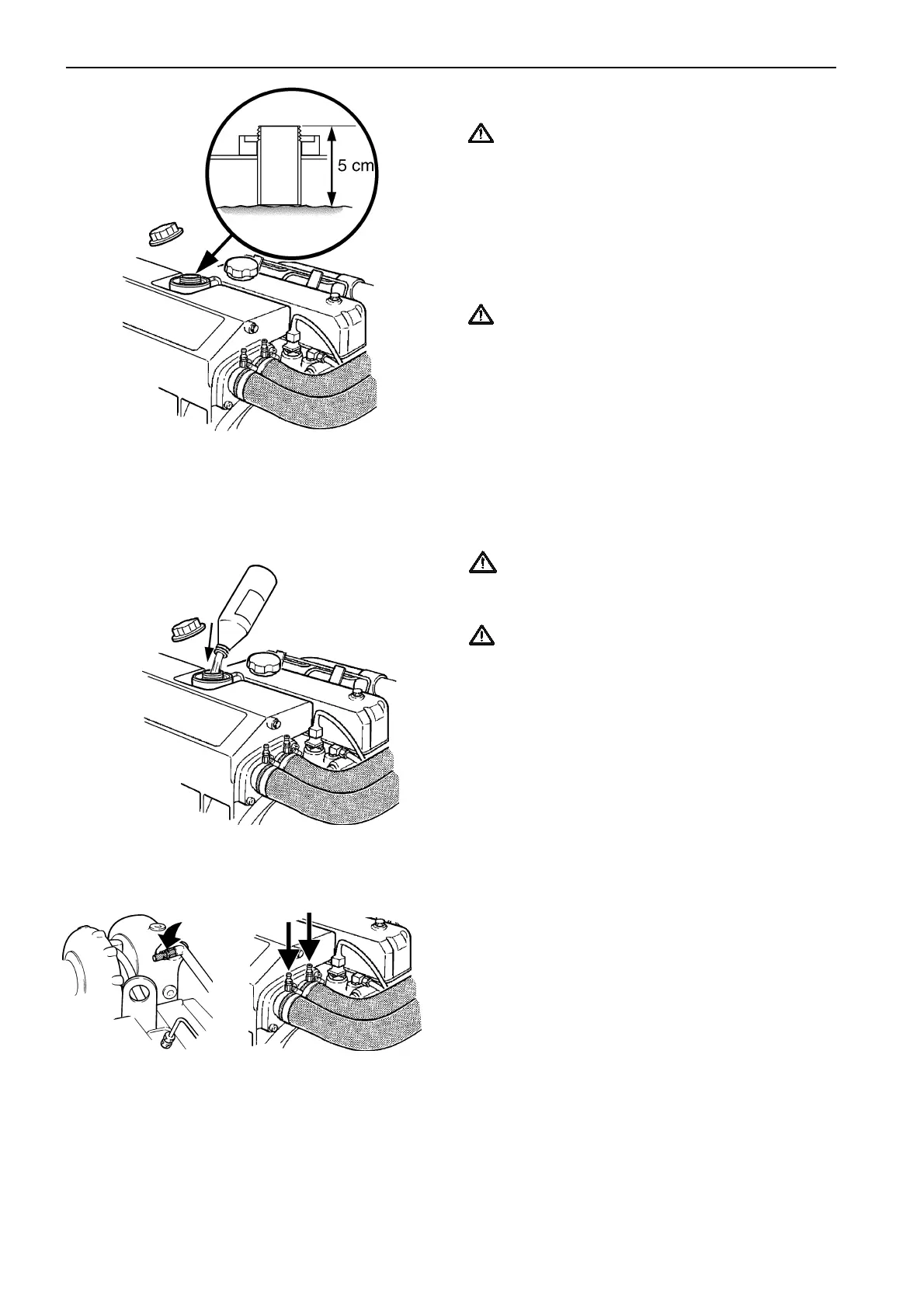 The level of the coolant should be approx. 5 cm (2 in.)