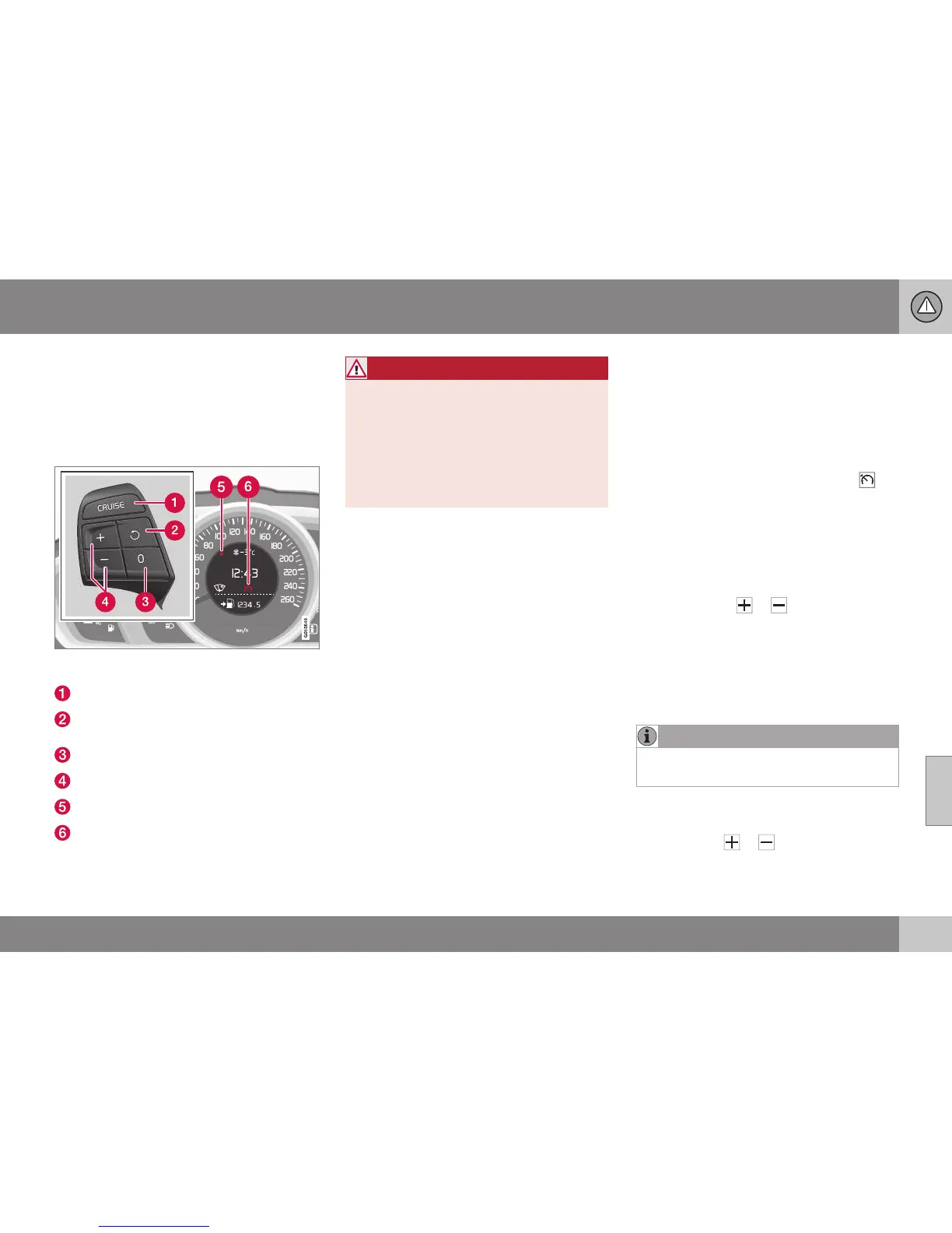 > The cruise control symbol (6) in the com-
