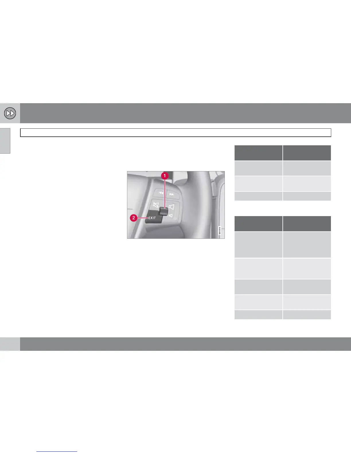The steering wheel keypad is used in the fol-