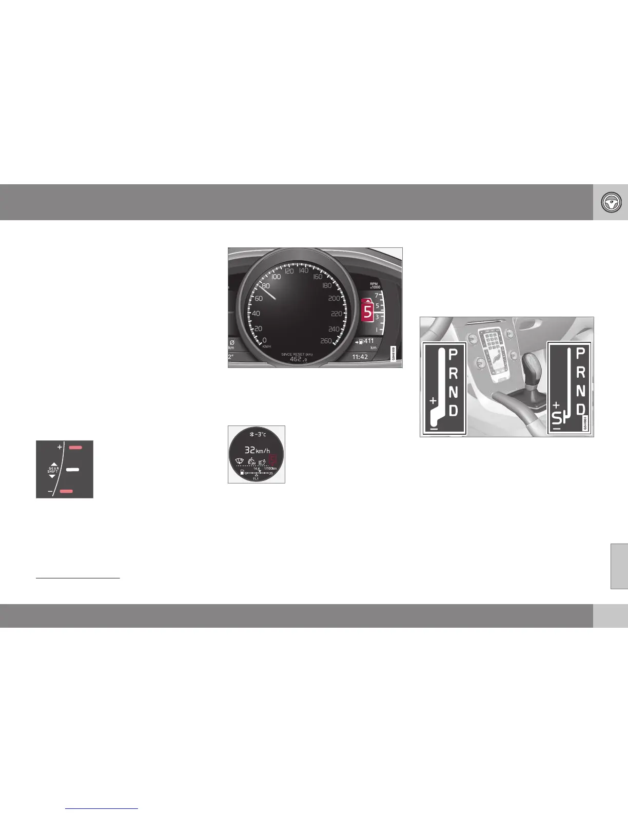 D: Automatic gear positions. +/–: Manual gear