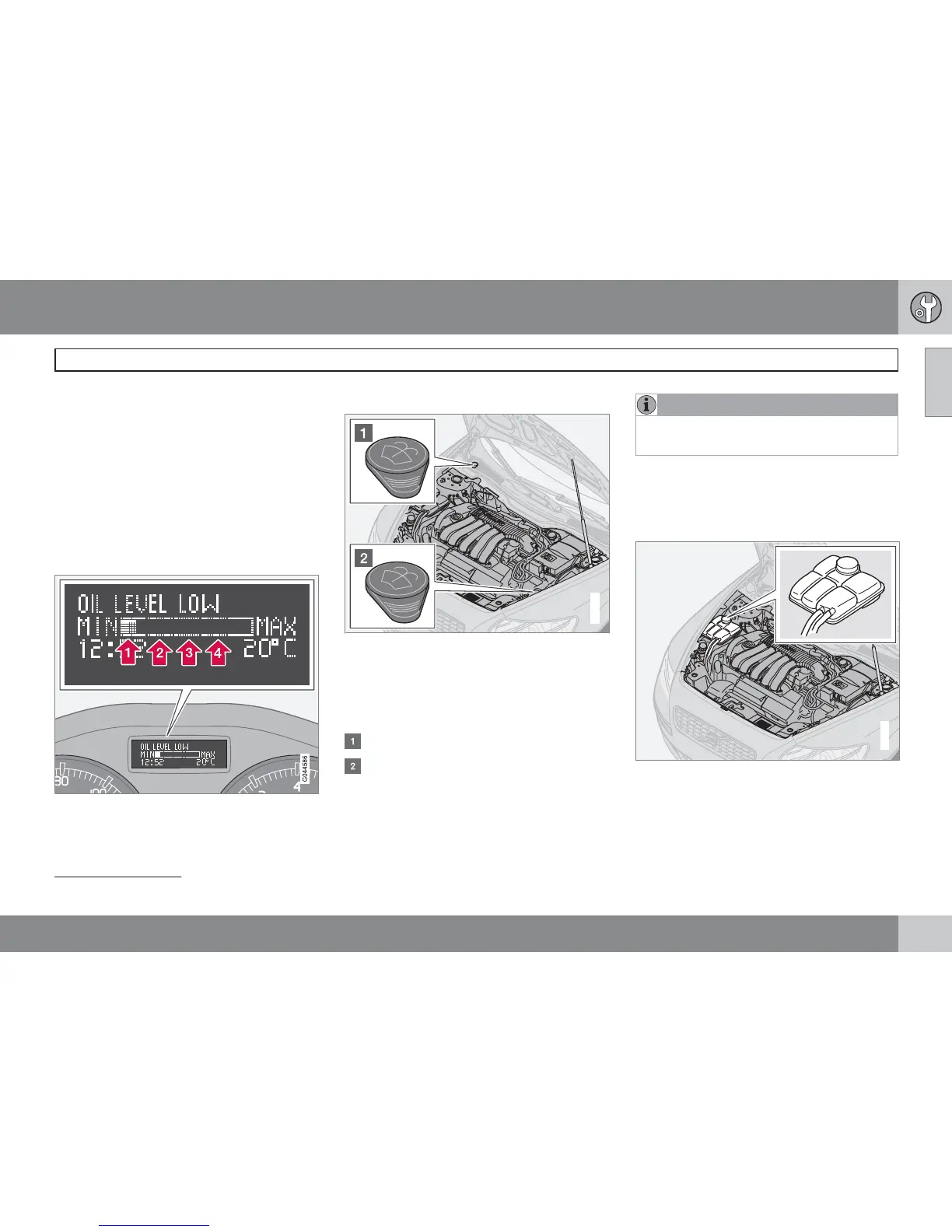 more oil if filling level (3) or (4) is shown. Recom-