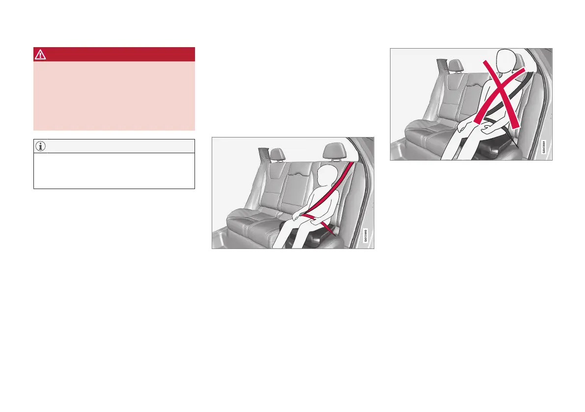 Incorrect positioning, the seatbelt must not be placed