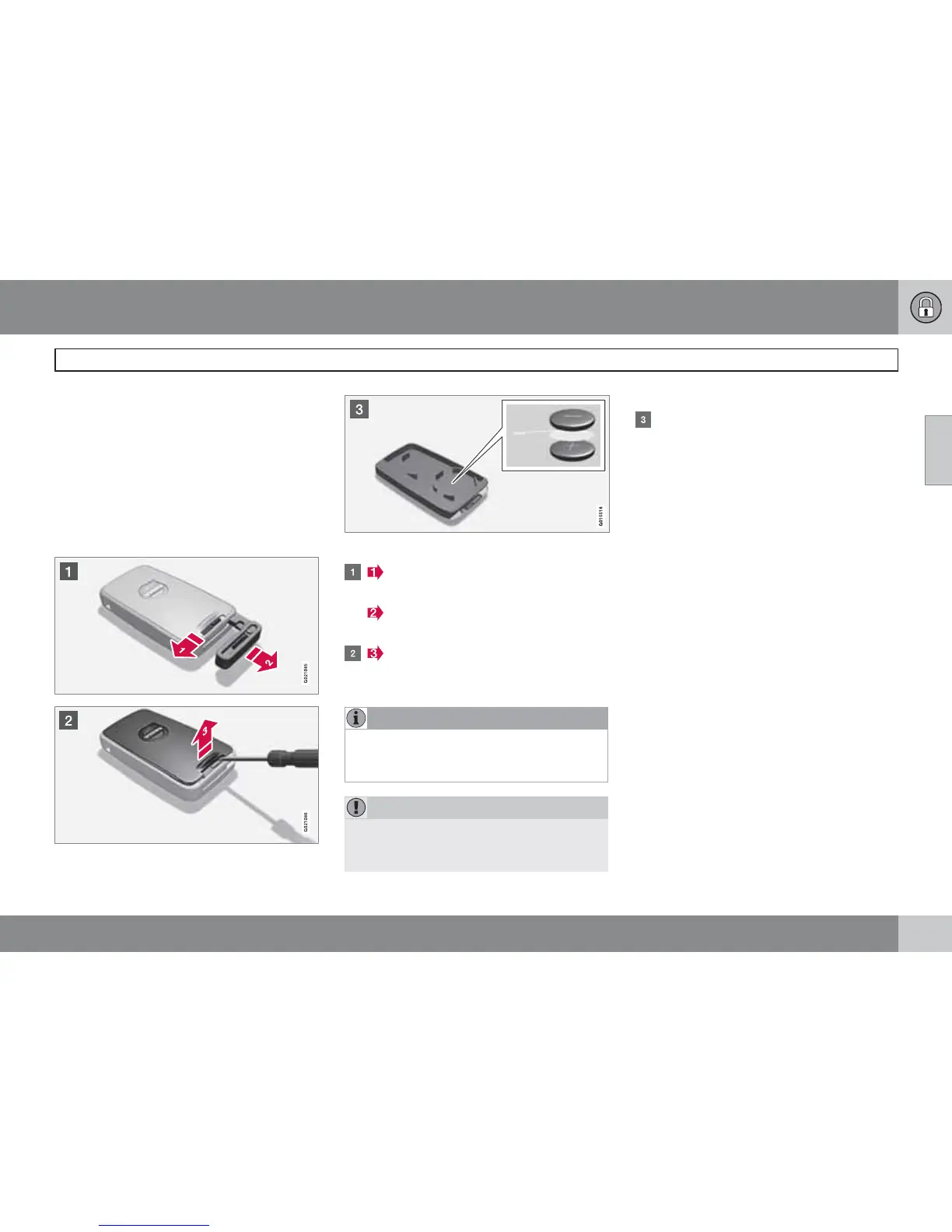Battery replacement, remote control key/PCC*