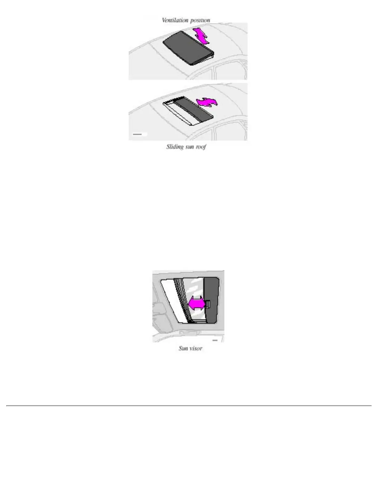 Do not attempt to fully close the sun visor when the sun roof is in the ventilation position as this could