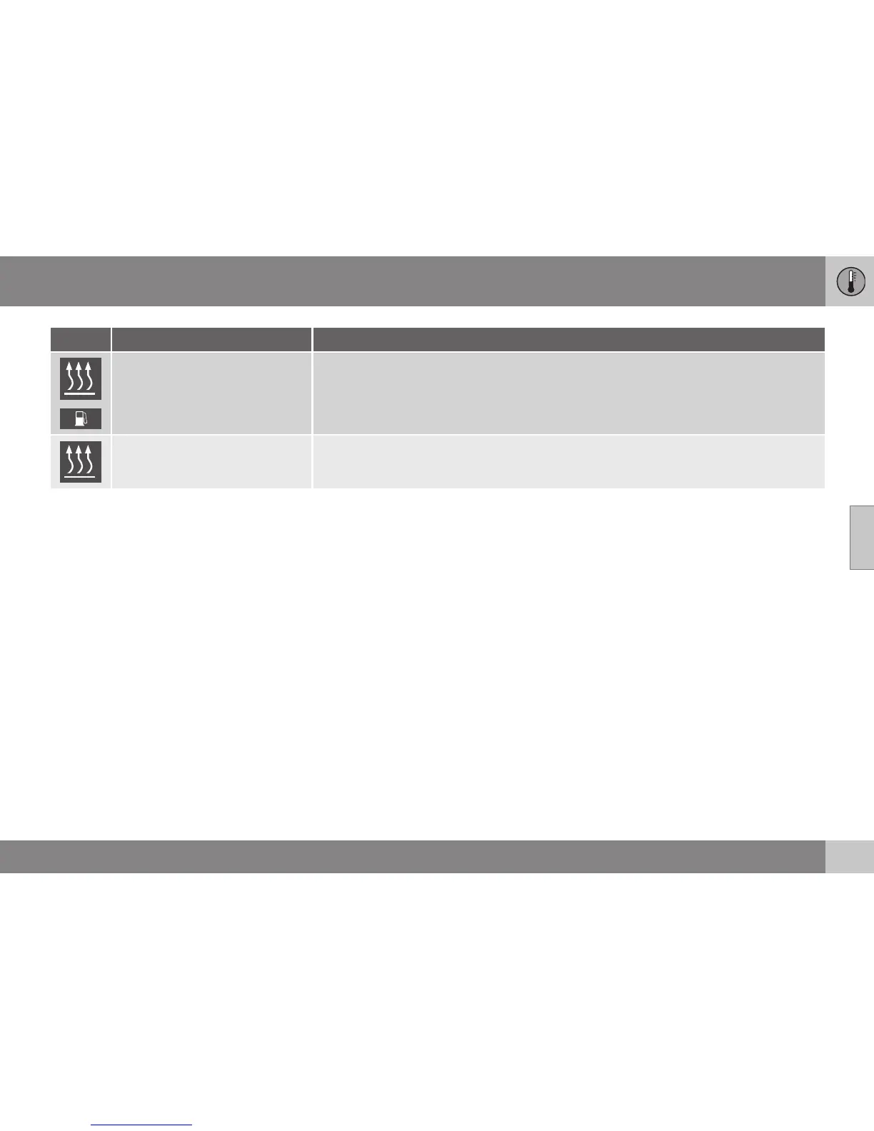 Heater not working. Contact a workshop for repair. Volvo recommends that you contact an
