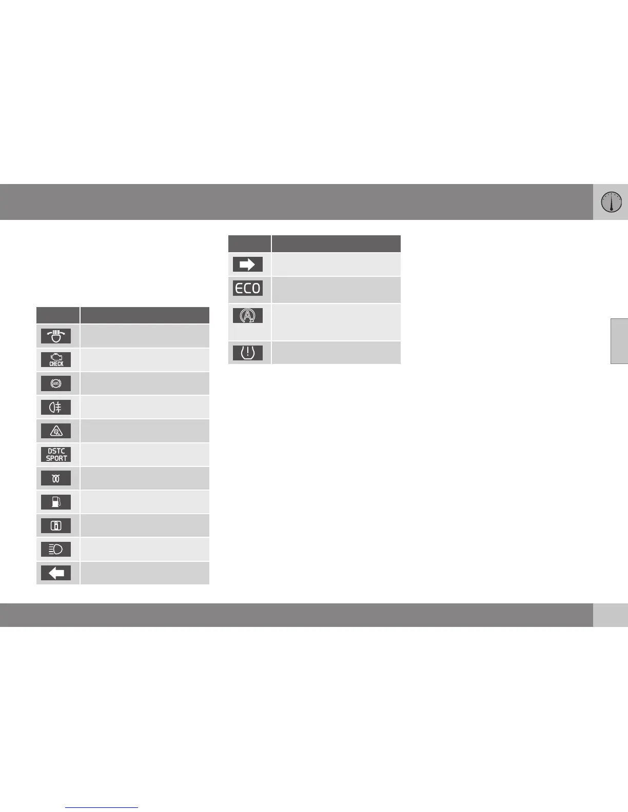 The indicator symbols alert the driver that a